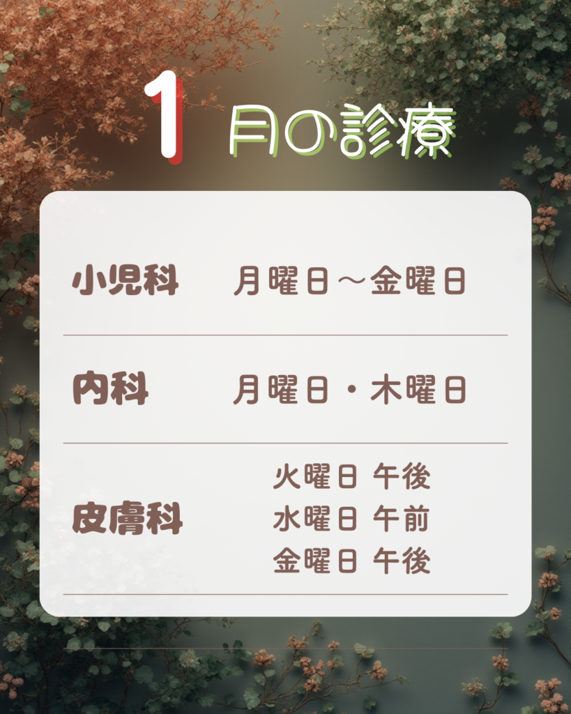 ※ ☆…消化器内科+一般内科/〇…一般内科/♡…循環器内科+一般内科/-…休診/◇…皮膚科