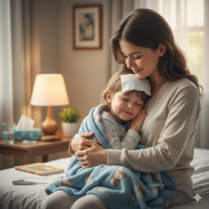 「咳と鼻水が続いてて、熱も微妙に出たり引いたりで…」